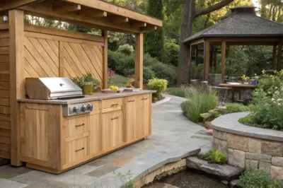 - Wooden Pergola Kit: Install a wooden pergola for stylish shade and a focal point in your outdoor kitchen.