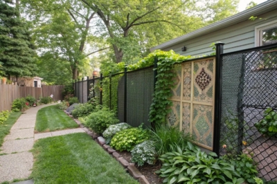 I’ve always loved the natural beauty that climbing plants bring to a fence. Fast-growing options like ivy or jasmine can turn your chain link into a lush, green wall over time, creating a serene and private retreat.