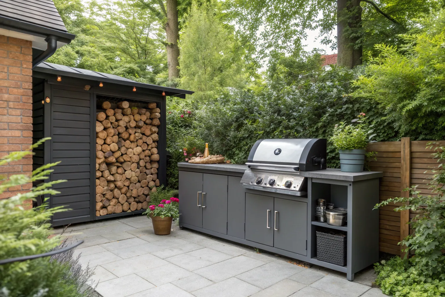 Maximize space with an outdoor storage bench that doubles as seating. It’s a clever way to hide your charcoal while adding functionality to your patio.
