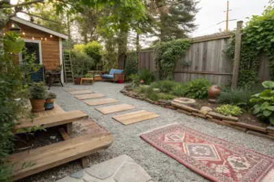 One of my favorite quick fixes for backyard flooring is gravel. It’s super easy to install, and its natural look blends perfectly with most garden styles.
