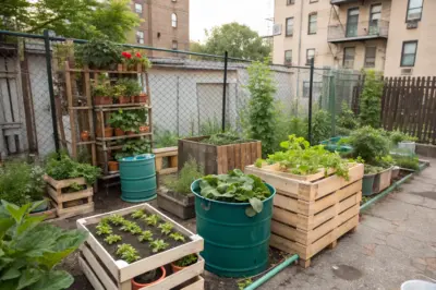 Stack old tires and fill them with soil to create sturdy planters. They offer great insulation and are ideal for larger plants like squash or cucumbers.