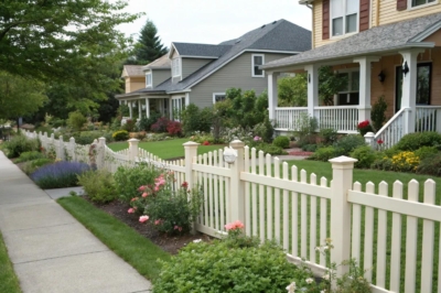 The white picket fence is a timeless choice that adds charm to any home. I’ve helped many clients achieve that classic look without spending a fortune by using budget-friendly materials.