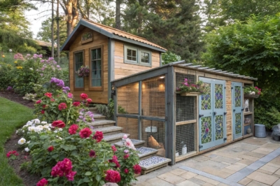 - Sage Green Exterior Paint: Brighten your coop with sage green paint, creating a lively and welcoming atmosphere.