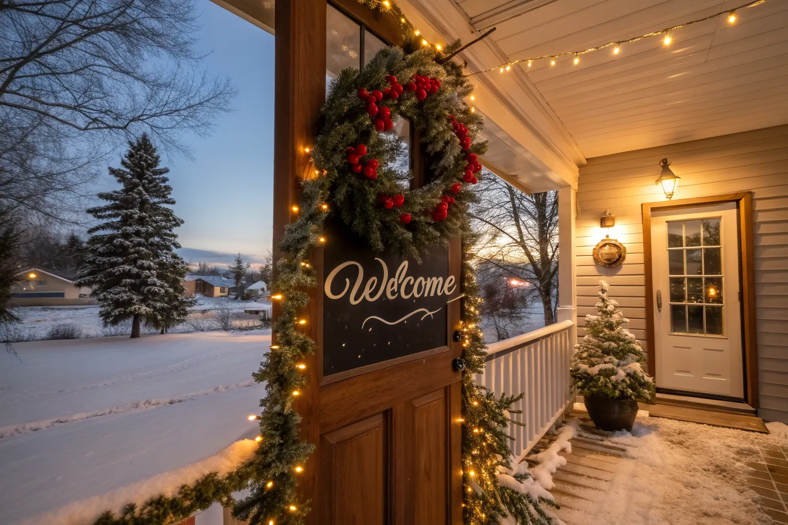 - String Lights for Outdoor Decor: Illuminate your entrance with enchanting string lights to enhance your fairy tale Christmas scene.