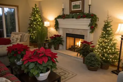 - Poinsettia Plant Set: Enhance your mantel display with vibrant poinsettias, perfect for a festive holiday look.