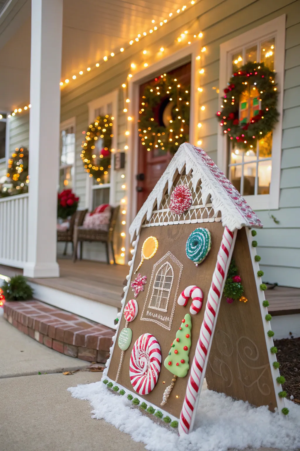 - Gingerbread House Outdoor Sign: Enhance your porch with this charming gingerbread house sign for a festive and sweet vibe.