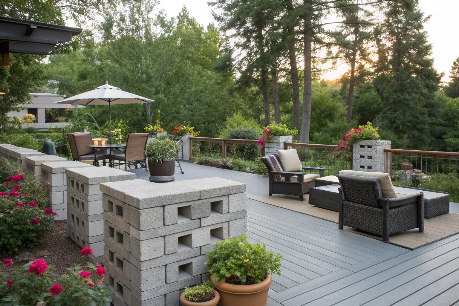 Use cinder blocks as decorative elements in your deck design for an artistic twist. I’ve seen clients use them as planters or even as part of a privacy wall.