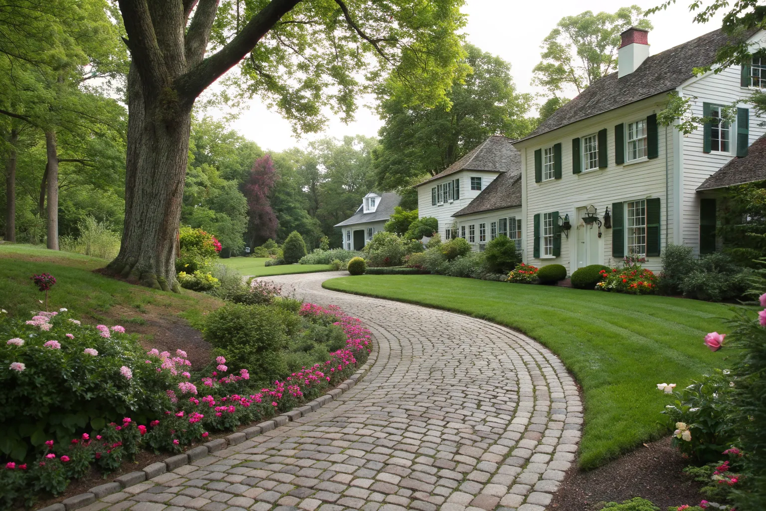 Extend your driveway into the garden with cobblestone pathways that meander through lush greenery. In my projects, this creates a continuous flow from entryway to backyard retreat.