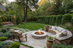 Add built-in seating around your fire pit for a cozy and practical setup. Clients love how this design encourages longer, more comfortable gatherings.