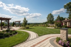 For a visually appealing walkway, try linear paths with grass and concrete. They guide the eye and the foot through gardens with an artistic flair that clients adore.