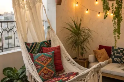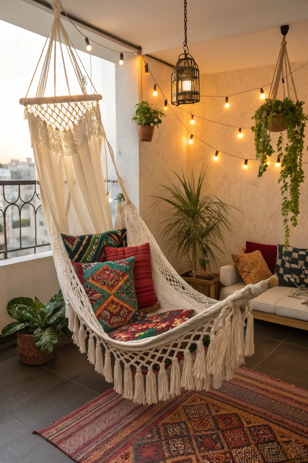 Add a touch of boho charm with a patterned hammock and eclectic throw pillows. My clients love adding macramé plant hangers and fairy lights for a cozy, inviting atmosphere.