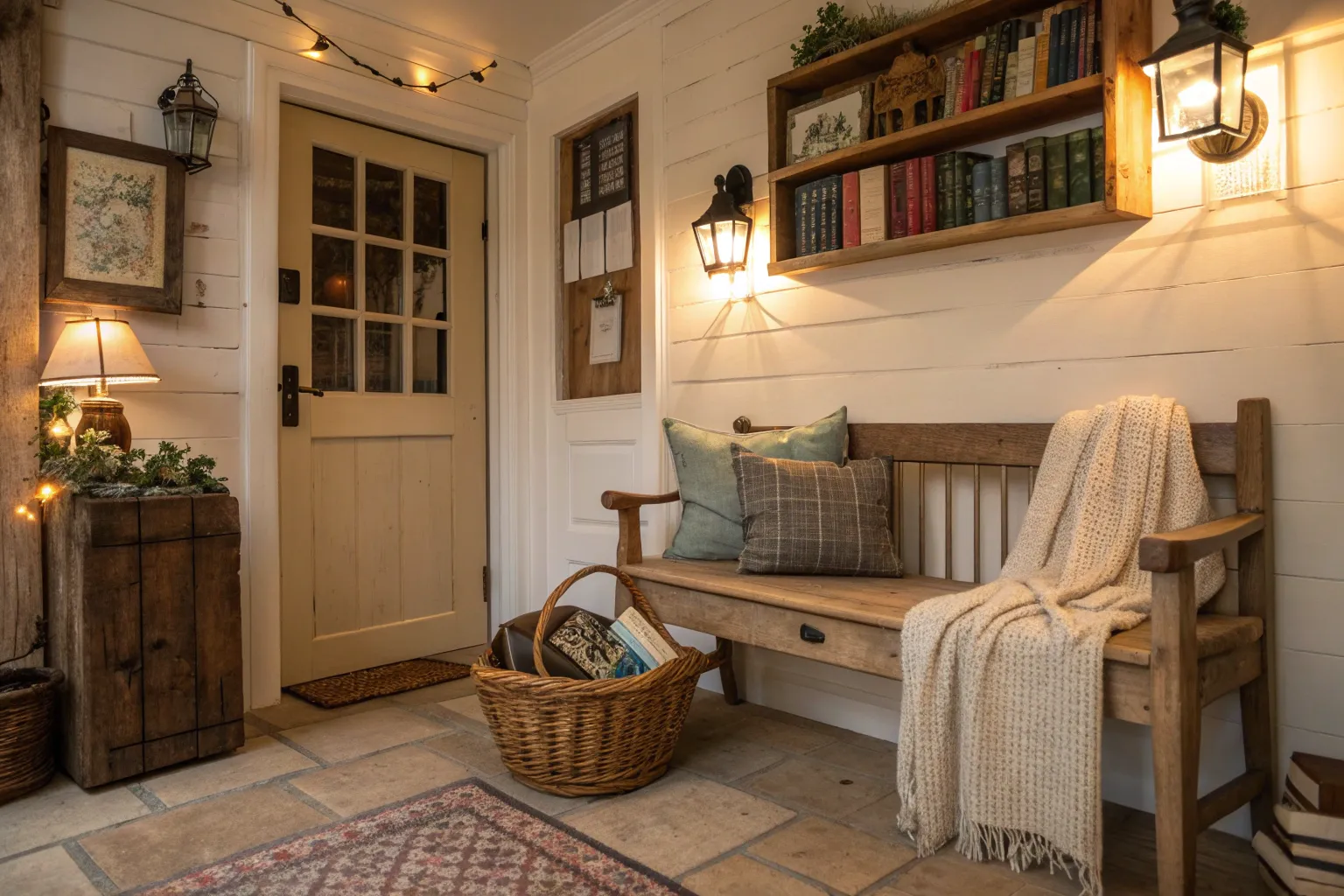 Shiplap walls are a staple in cottage design, adding texture and a cozy feel. In projects with clients, I’ve painted the shiplap in soft whites or pale grays to keep the entryway light and airy.