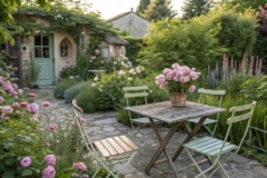 Incorporate rustic furniture like weathered wooden benches or metal chairs to add charm. I love finding these pieces at flea markets and giving them a new life in the garden.