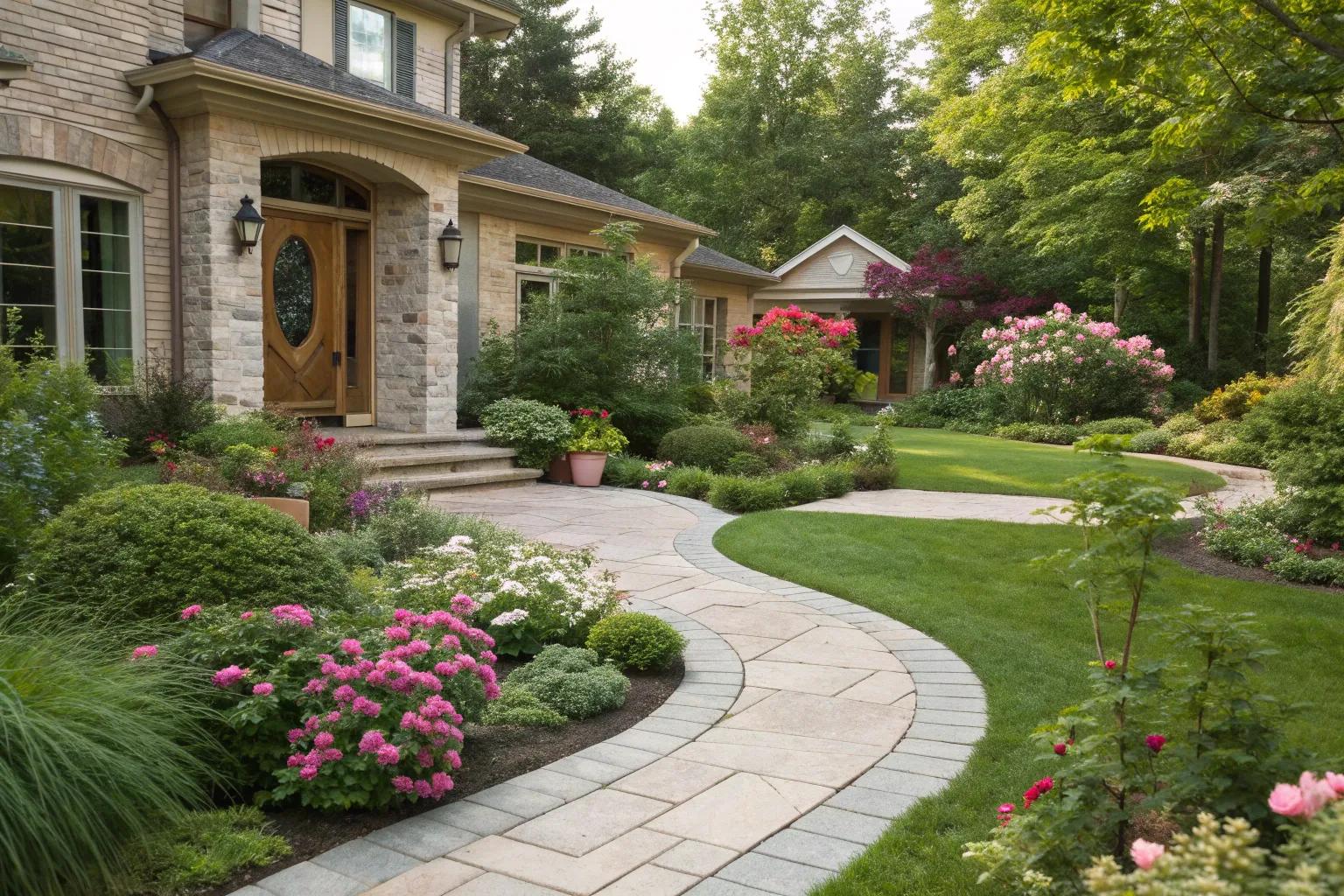 Using natural stone for your walkway creates a timeless and elegant look. As I’ve seen with clients, the varied textures and colors of stone can beautifully contrast with lush greenery.