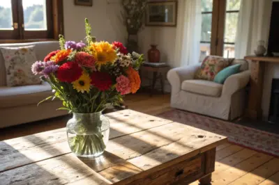 For a long-lasting display, use dried flowers arranged in a vintage vase. They bring a rustic charm to any room and require minimal maintenance.