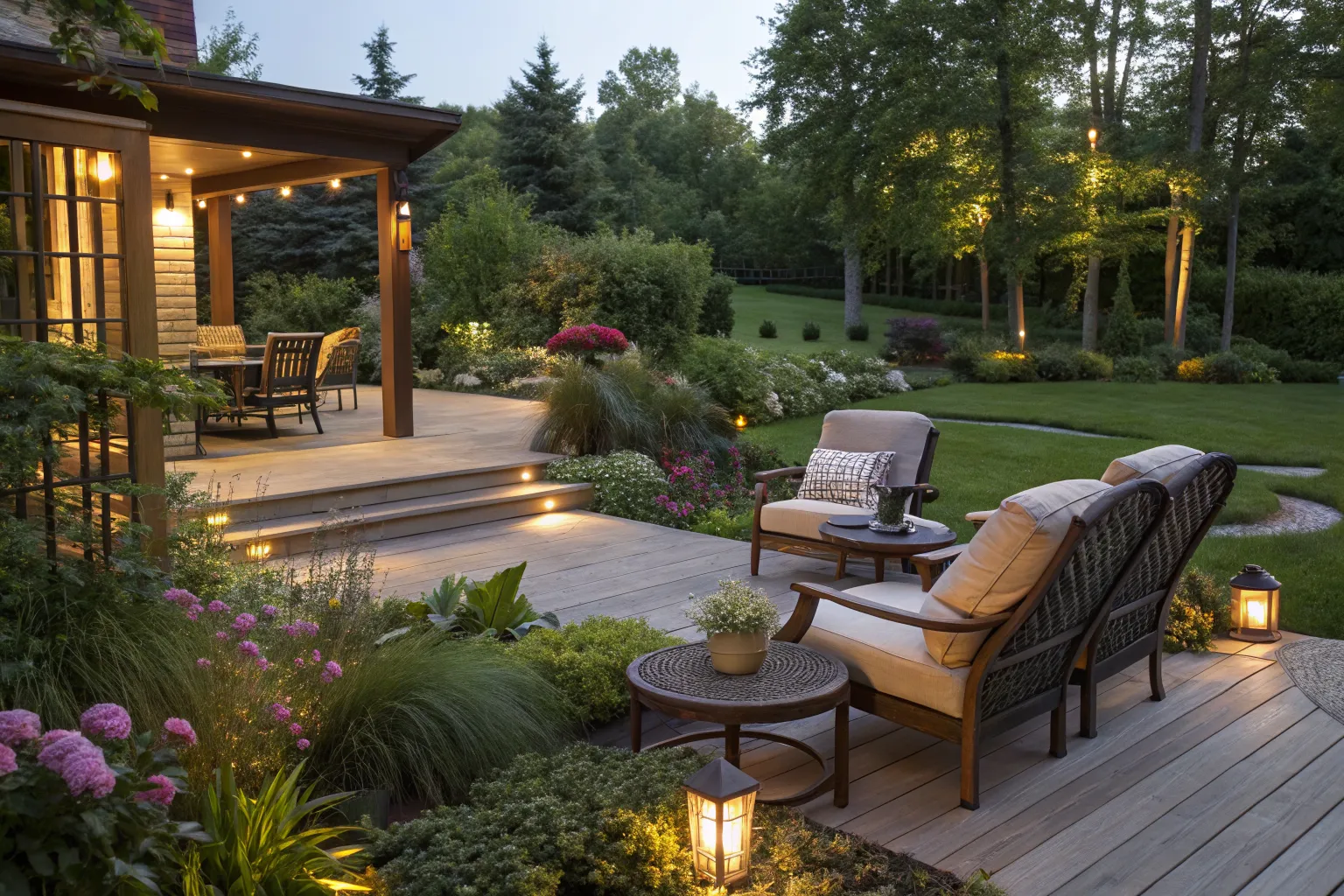 Transform a corner of your deck into a cozy nook with plush seating and soft lighting. It’s a favorite spot for clients to unwind with a book or enjoy a morning coffee.