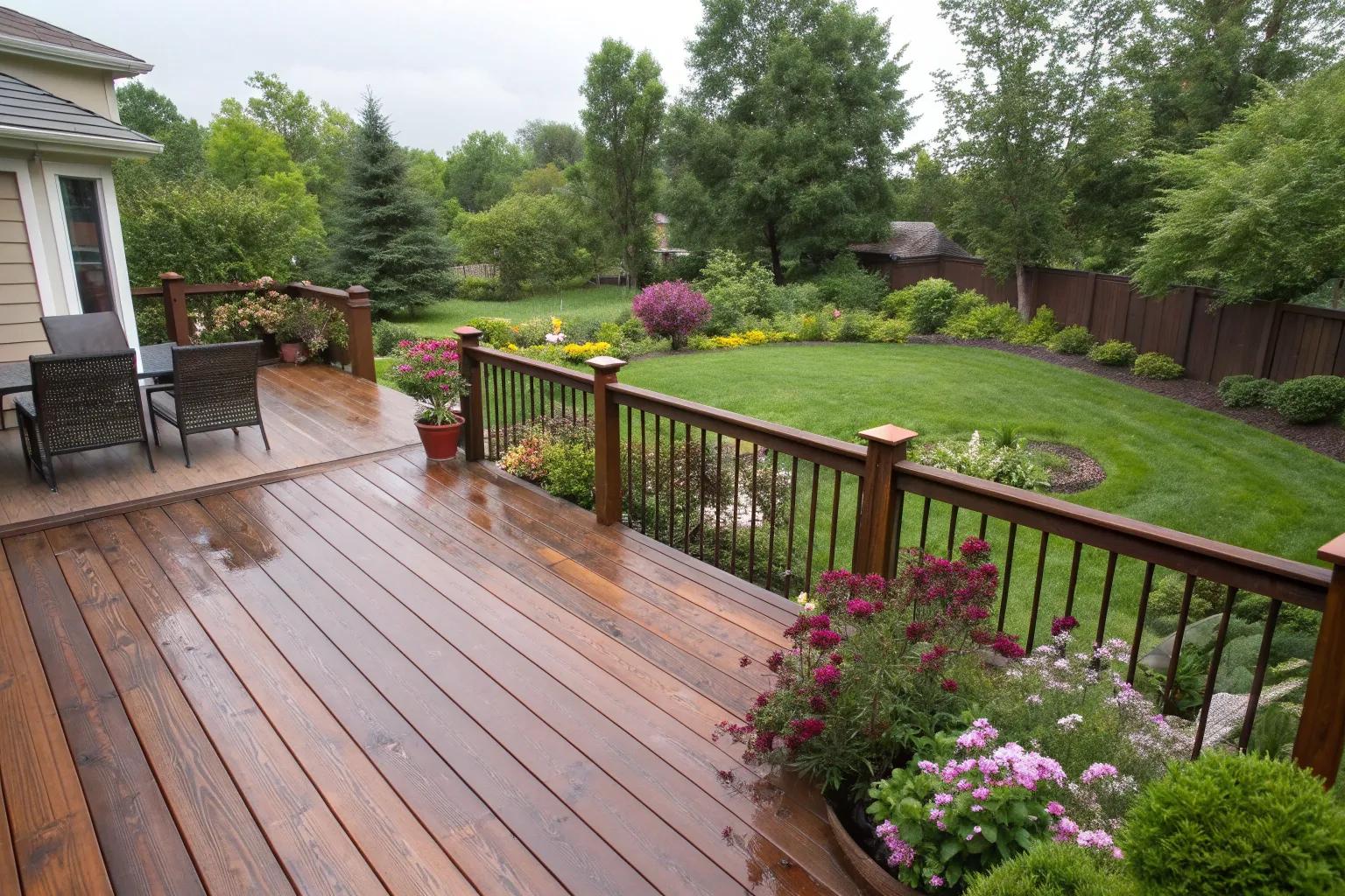 Choose a stain that blends with the landscape for a harmonious, integrated look. I’ve found that earthy tones work wonders in creating a seamless transition between deck and garden.