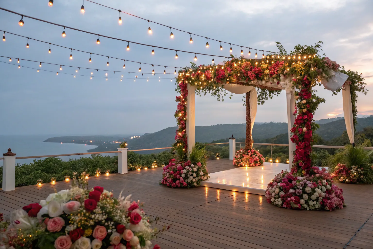 - Artificial Seasonal Flowers: Add vibrant color to your wedding deck with realistic artificial seasonal flowers.