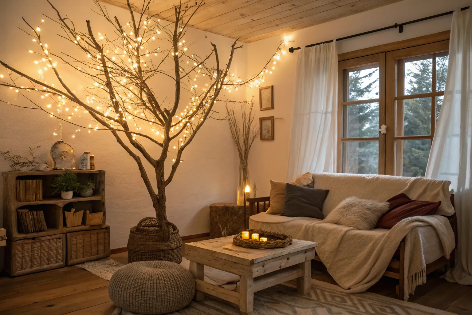 - LED String Lights: Illuminate your branches with warm LED string lights, perfect for creating cozy seasonal ambience.