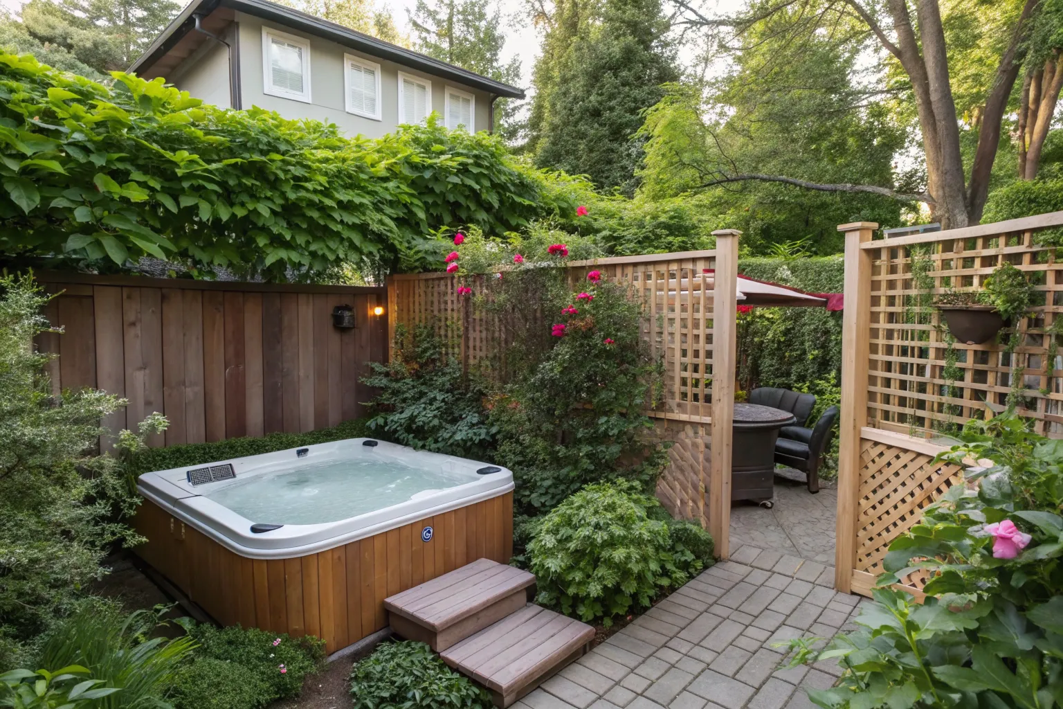 - Wooden Lattice Panels: Enhance your hot tub privacy with versatile wooden lattice panels that add elegance and charm.