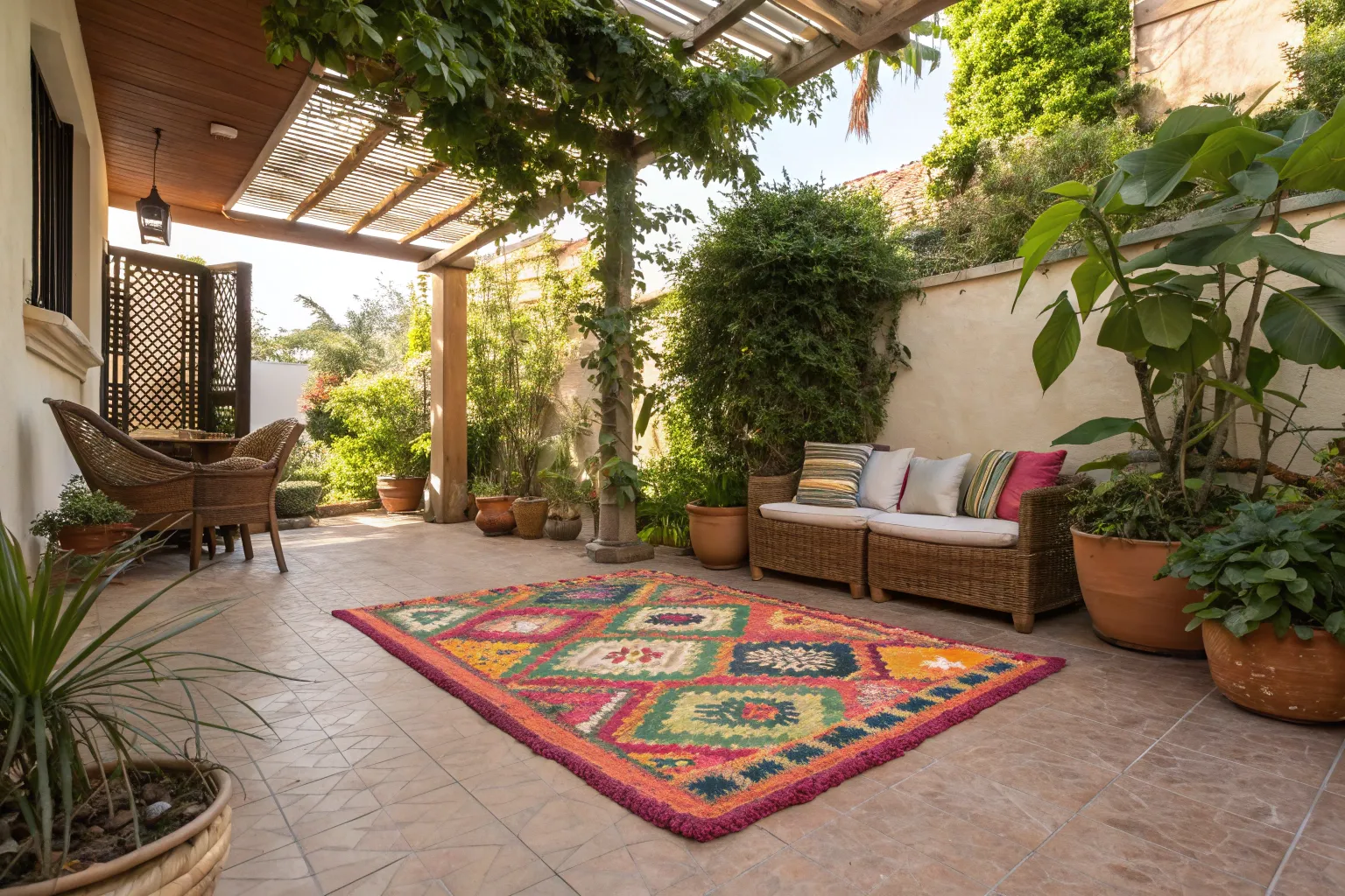 - Natural Jute Rope: Create a sturdy, nautical rope rug for your patio. Durable and weather-resistant.