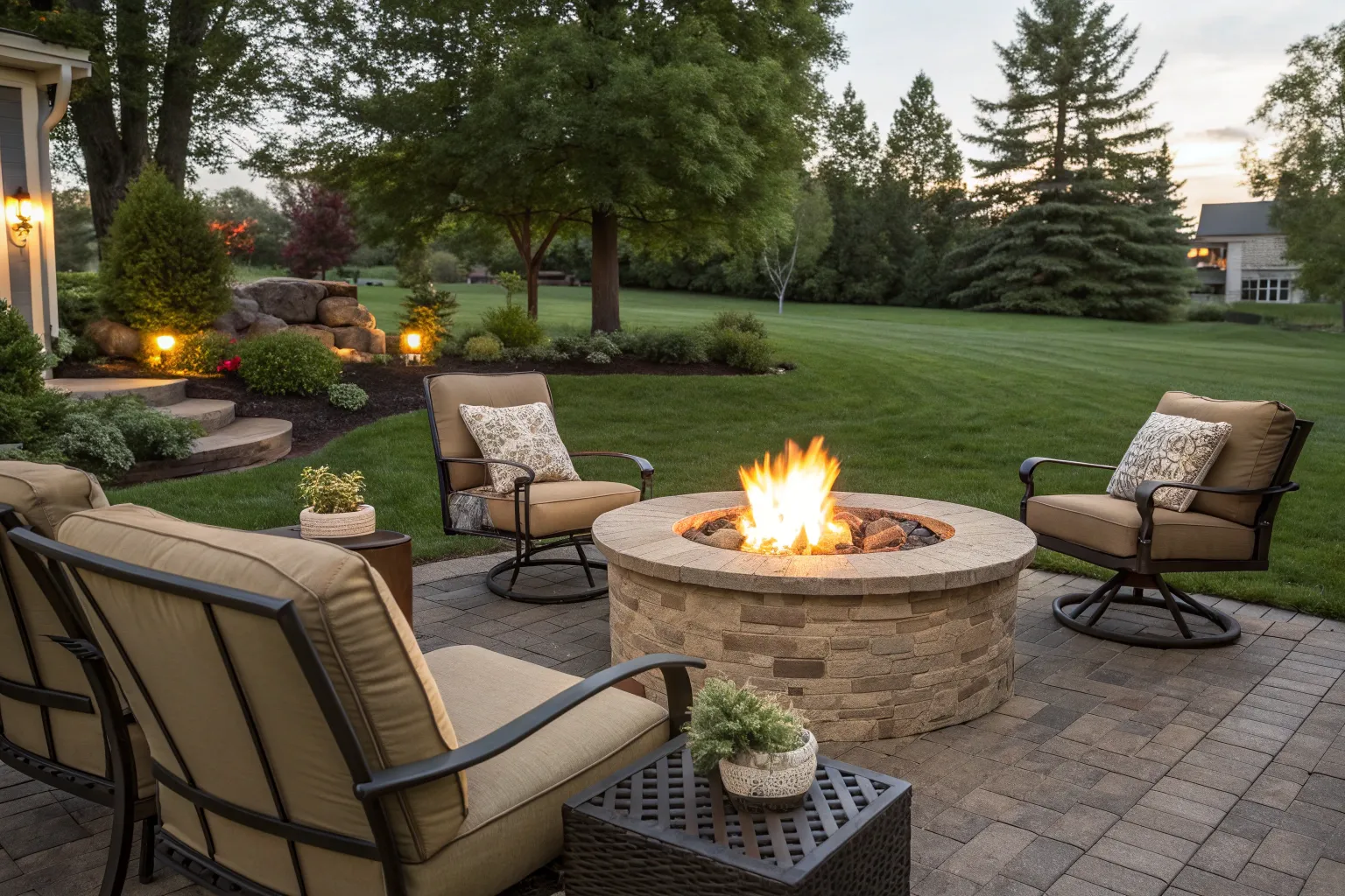 Create a cozy seating area around your fire pit with comfortable and inviting chairs. This setup encourages socializing and relaxation.