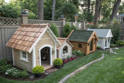 For those with an artistic flair, mosaic tiles can turn a dog house into a garden centerpiece. This creative option allows you to personalize the design and add vibrant colors.