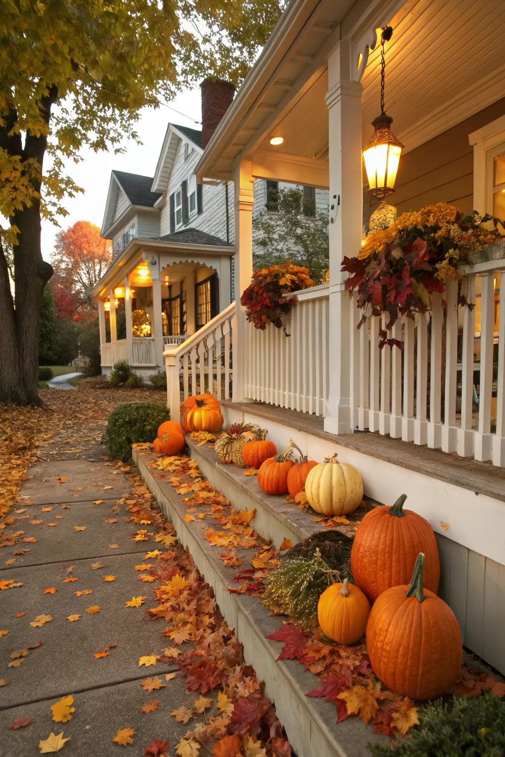 - Decorative Pumpkin Set: Enhance your porch steps with a set of vibrant, lifelike pumpkins for a festive fall look.