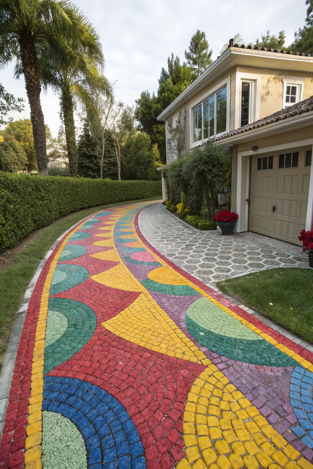 Why settle for one color when you can have a mosaic? A multicolor mosaic design adds excitement and creativity, turning your driveway into a true work of art.