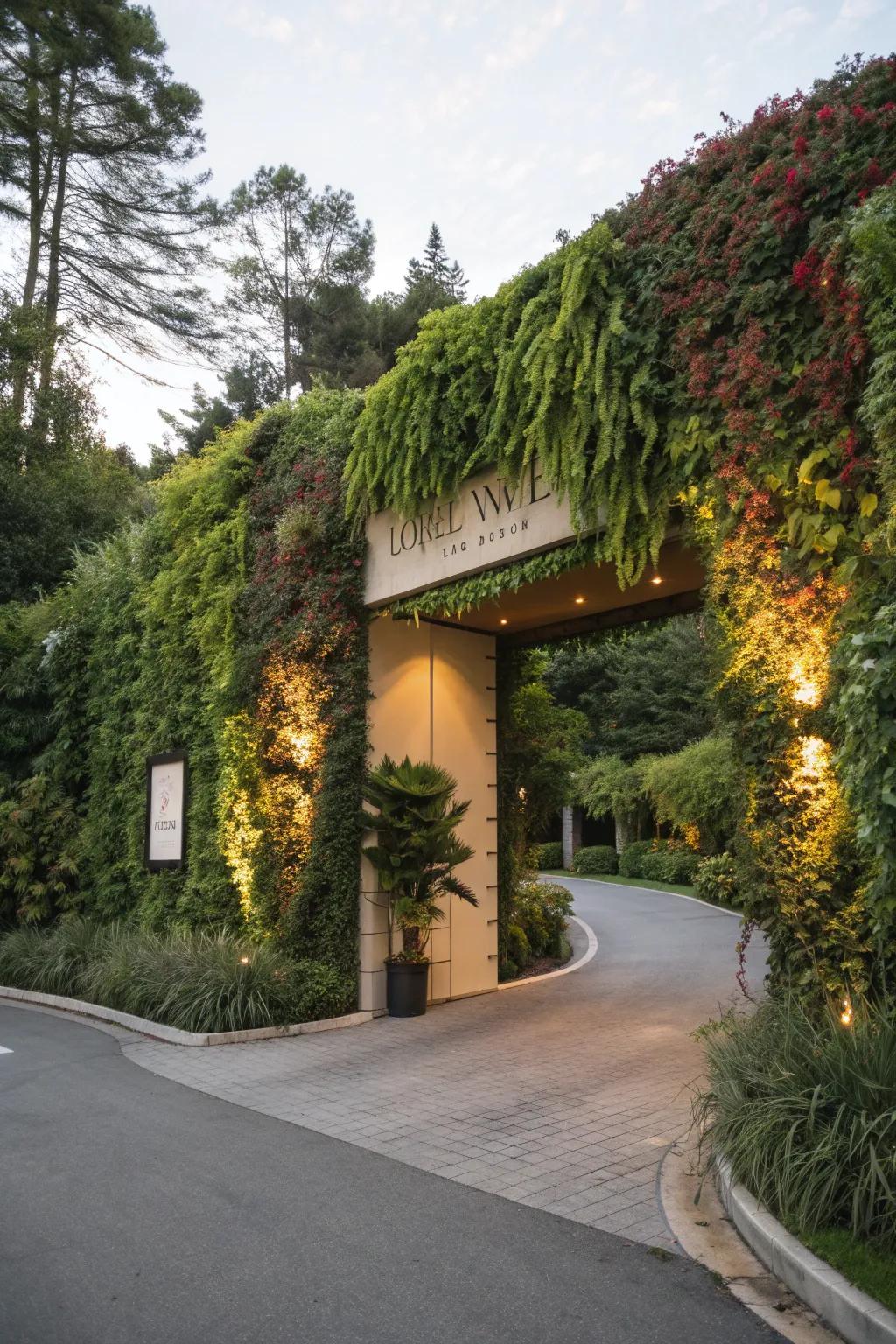 For a show-stopping entry, consider a living wall sign with vertical plants. It’s a perfect blend of nature and creativity, turning your driveway into a lush oasis.