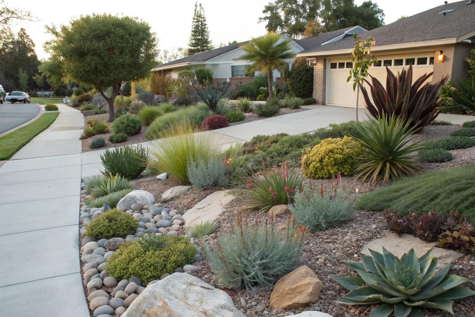 Incorporating native plants into your front yard is a smart way to ensure your landscape thrives with minimal water. I’ve seen firsthand how these resilient plants can handle the California heat with grace.