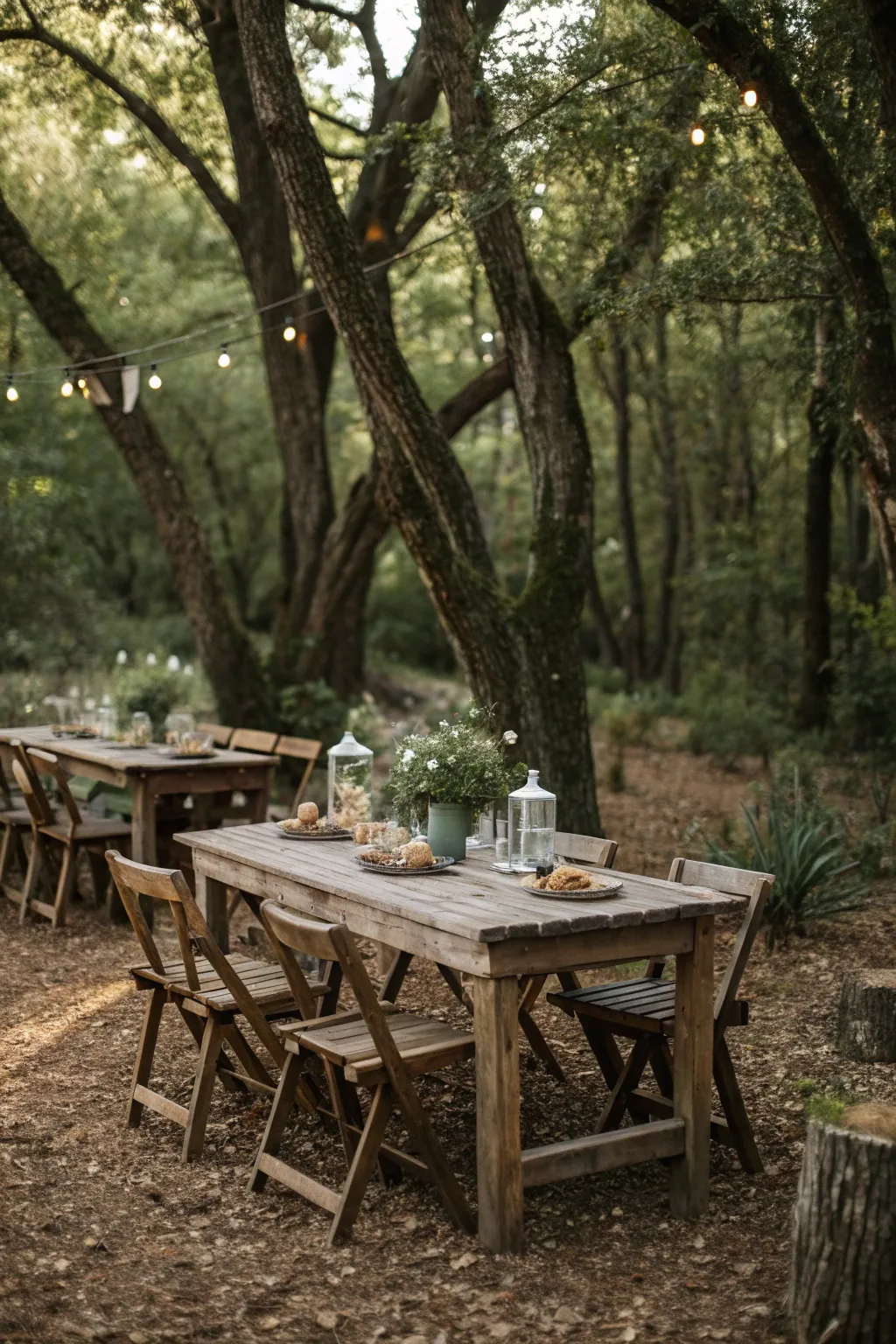 - Wooden Picnic Table Set: Create a cozy ambiance with a wooden picnic table set, perfect for an enchanted forest vibe.