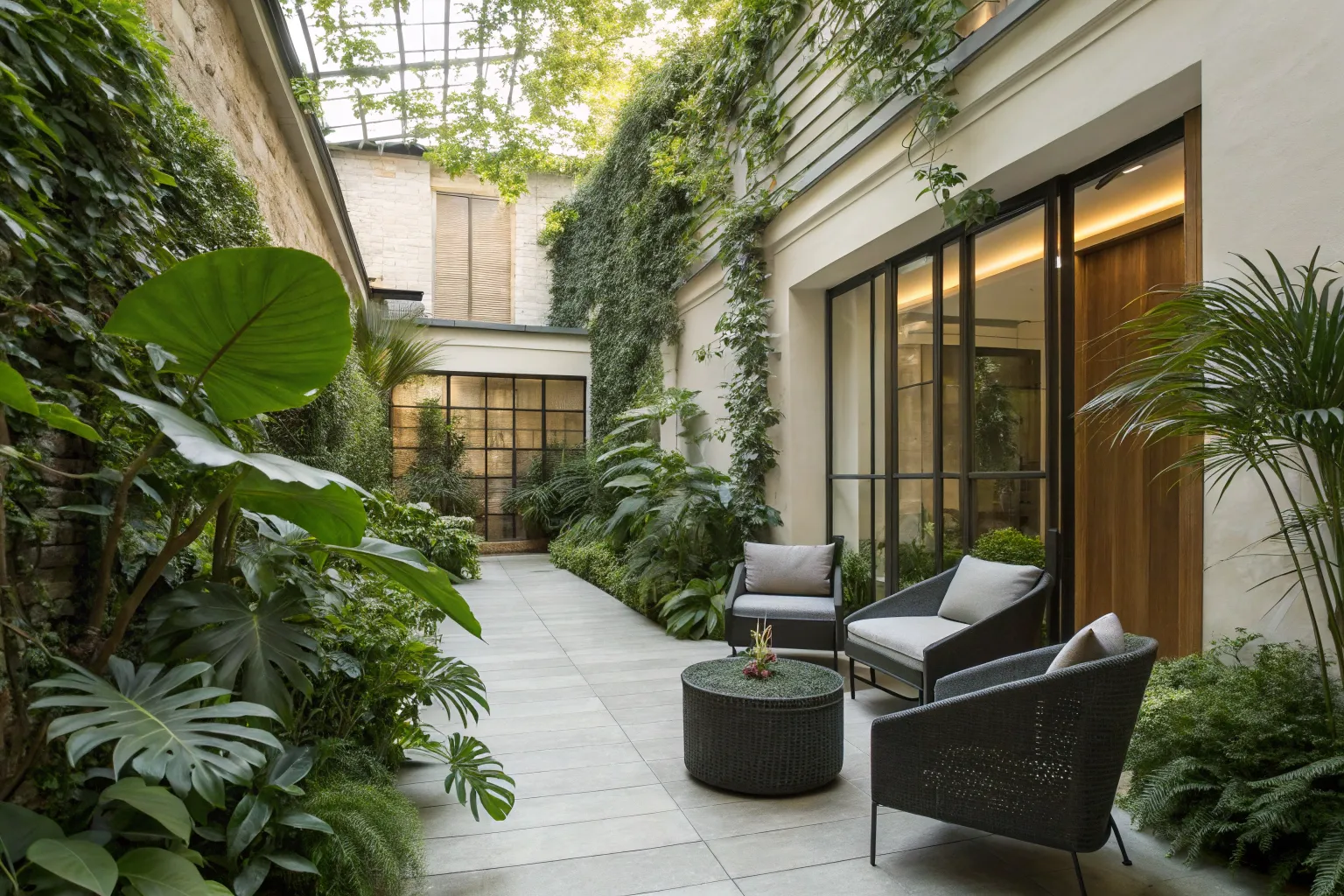 - Outdoor Shade Trees: Create a refreshing, shaded retreat in your courtyard with vibrant, mature outdoor trees.