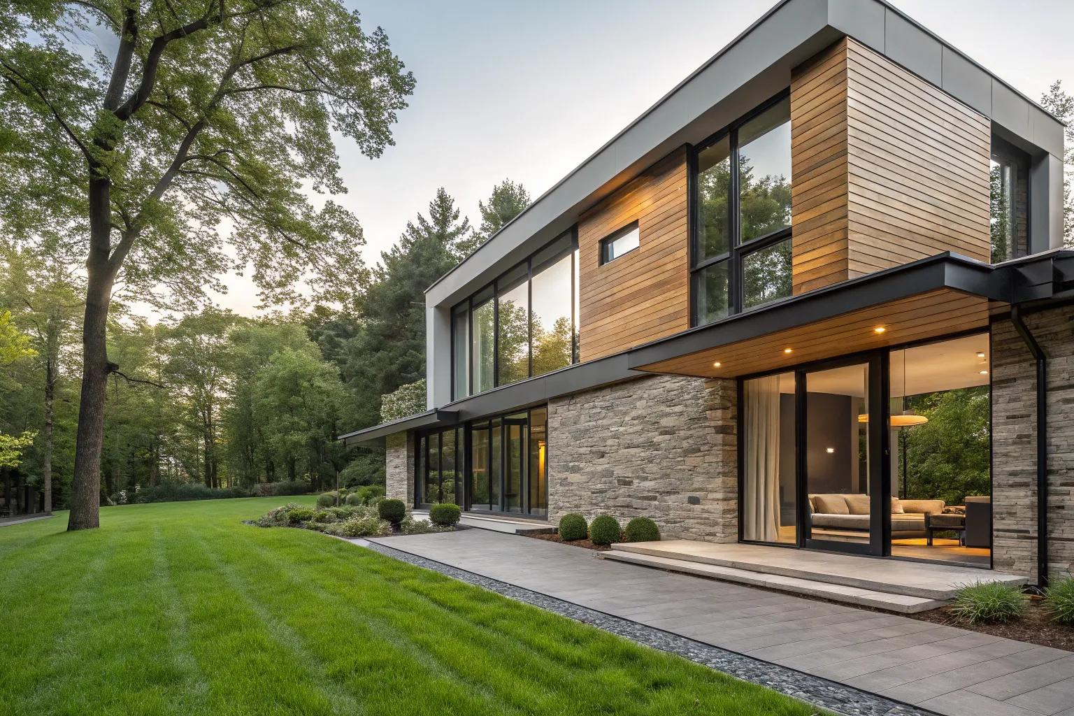 Natural stone accents bring a touch of elegance and durability to any facade. It’s a material I’ve used in many projects for its timeless beauty and resilience.
