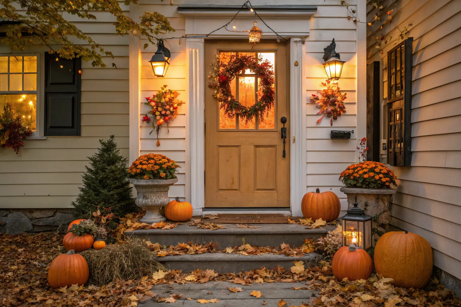 - Outdoor Waterproof Fairy Lights: Illuminate your doorway with waterproof fairy lights for a cozy and enchanting autumn evening.