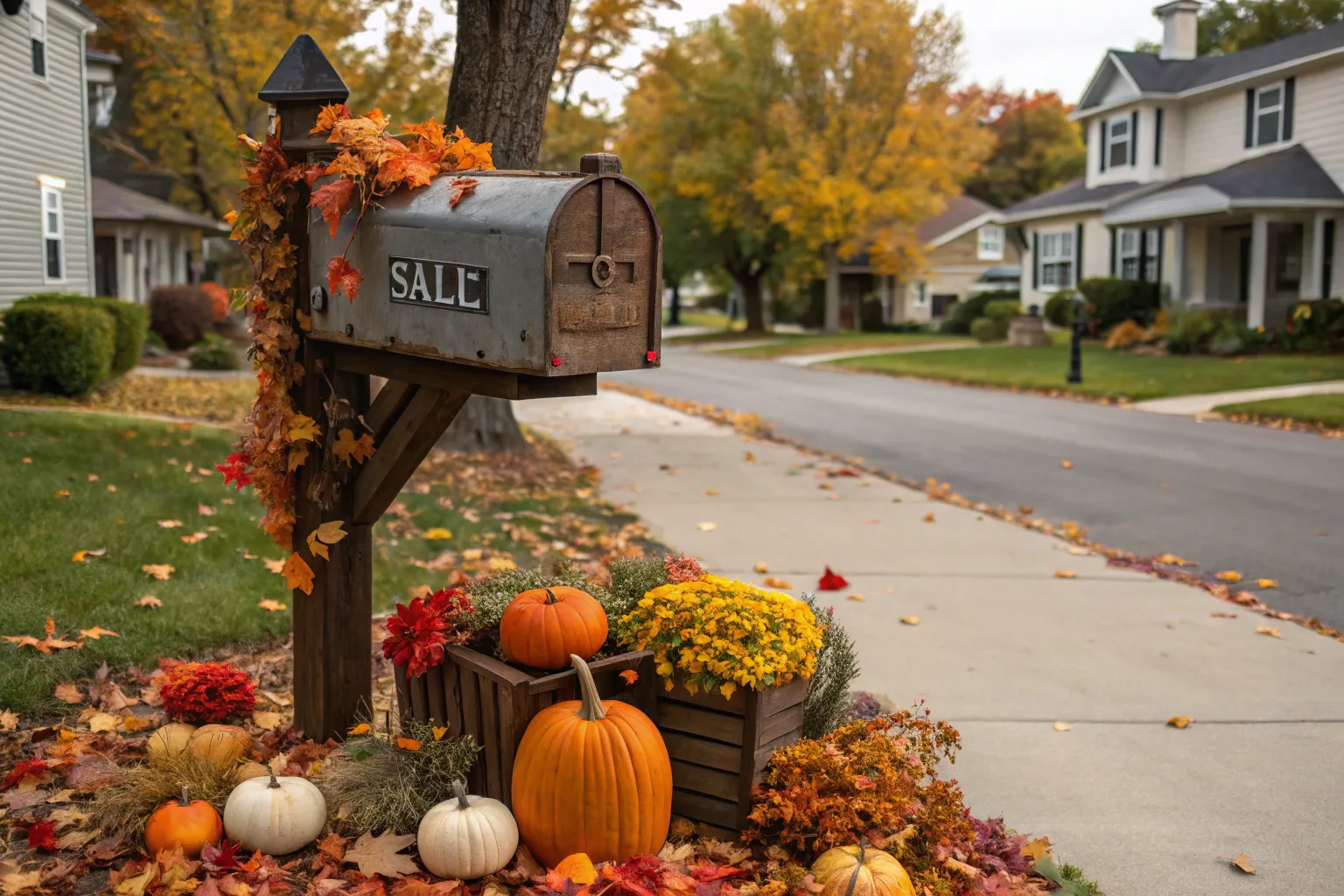- Outdoor Fall Floral Arrangement: Enhance curb appeal with a beautiful fall-themed floral arrangement for your mailbox area.