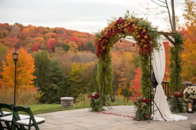 - Floral Garland with Autumn Leaves: Enhance your arch with a floral garland featuring autumn leaves for a seasonal touch.
