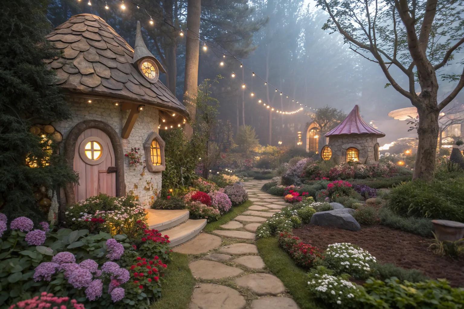 A miniature village with tiny houses and fairy cottages can turn your garden into a storybook scene. I’ve seen clients’ eyes light up when they spot these charming little homes nestled among the greenery.