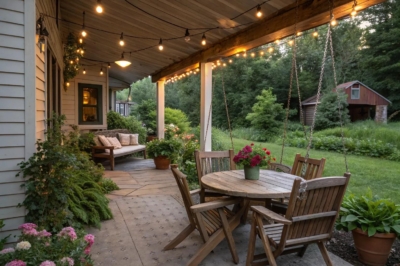 Adding string lights can instantly turn your porch into a magical evening retreat. I love using warm-toned lights; they create such a lovely ambiance for those long summer nights.
