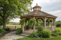 A pergola draped with string lights can create a magical atmosphere in any backyard. In my projects, pergolas have been a hit for providing both shade and style.