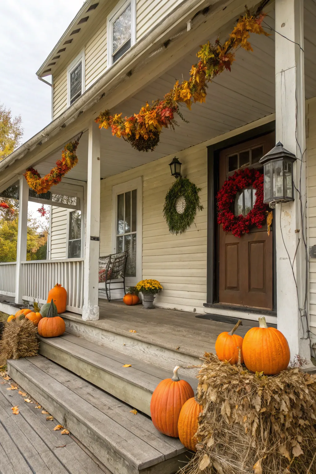 - Autumn Garland: Enhance your railing with an autumn garland, bringing vibrant seasonal colors to your home.