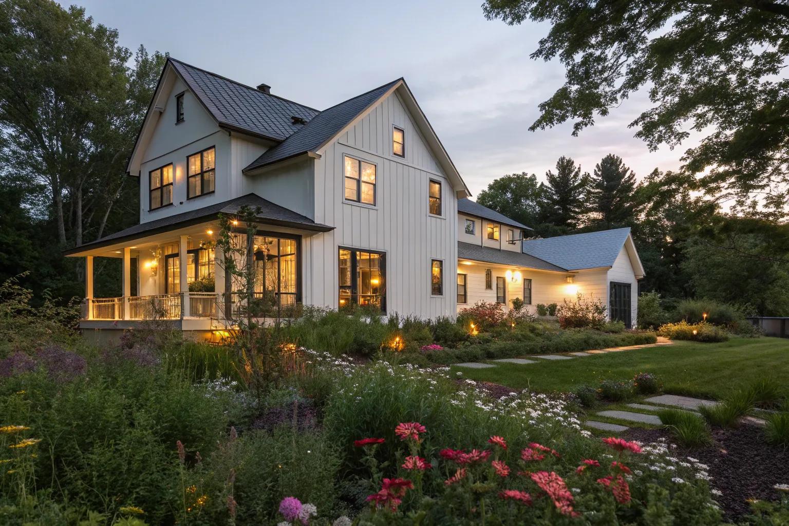 For a bold architectural statement, consider vertical Hardie board siding. It’s a striking choice that adds height and elegance to any farmhouse design.