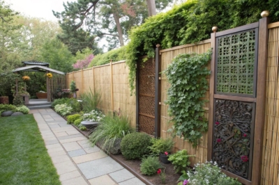 For a tropical vibe, bamboo panels are a go-to. They’re durable and have a natural elegance that effortlessly blends with any garden style.
