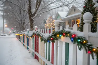 Use your picket fence as a charming backdrop for Christmas lights. This setup is a favorite among those who love that quintessential holiday look.
