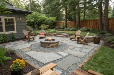 Creating terraced levels around your fire pit adds dimension and interest, ideal for sloped yards. Clients love how it transforms uneven terrain into a stunning, functional space.
