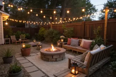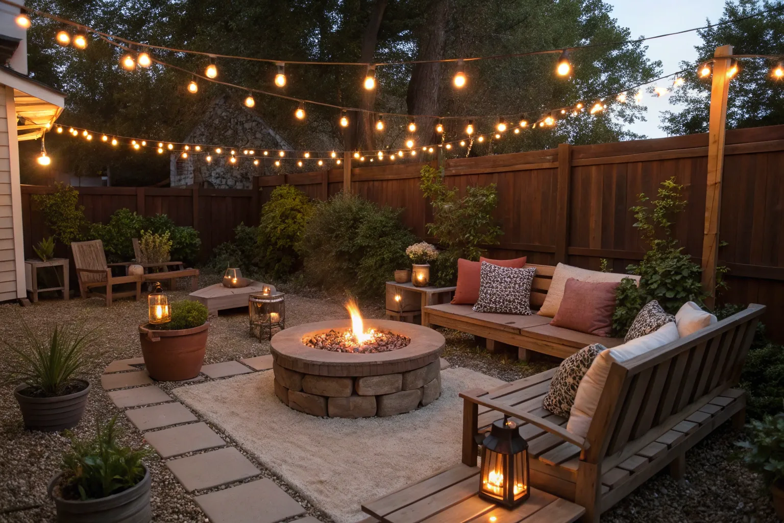Drape some string lights overhead to add a magical glow to your firepit area. The soft illumination not only enhances visibility but also creates a warm, inviting atmosphere that my visitors always adore.