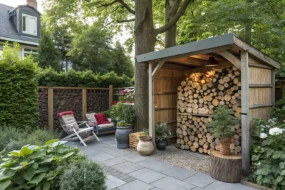 - Wood Storage Shed with Doors: Enhance your garden with a stylish shed, keeping your firewood hidden and organized.