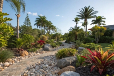 Opt for a low-maintenance design that highlights the natural beauty of rocks and plants. This approach is perfect for Florida’s climate, and trust me, your future self will thank you for the simplicity.