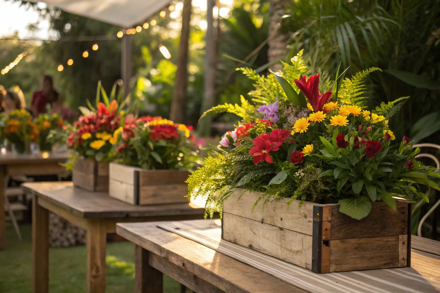 - Set of Rustic Wooden Crates: Embrace bohemian charm; fill rustic wooden crates with wildflowers for a carefree atmosphere.