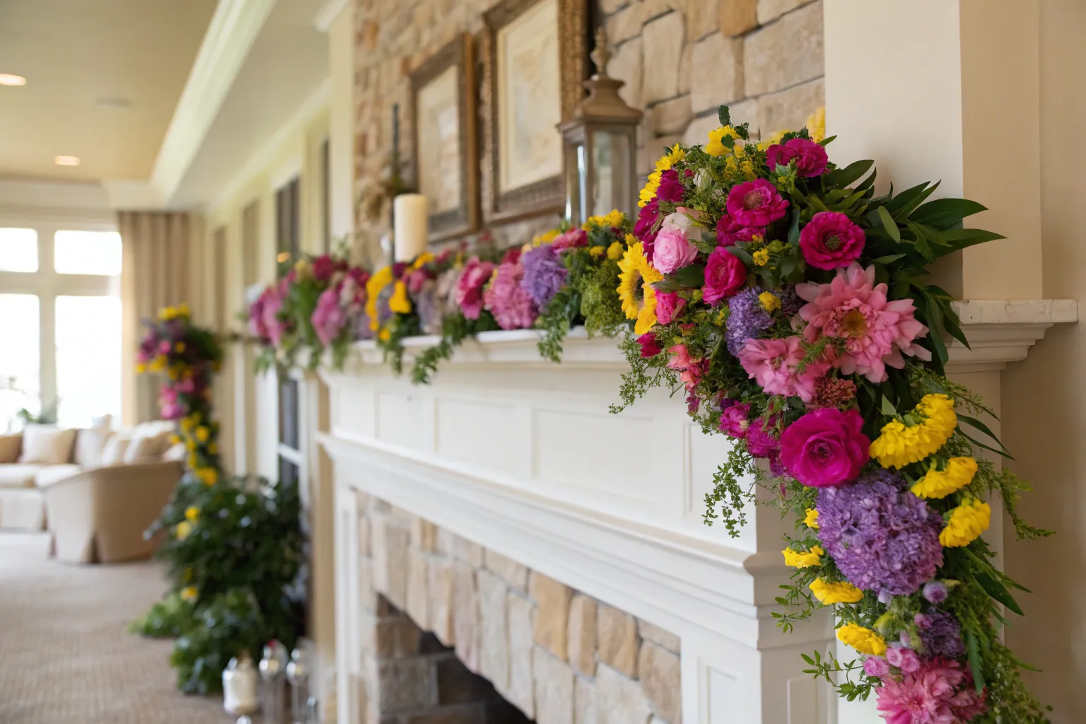 Drape a flower garland over your mantel to create a focal point in your living room. I’ve found that combining roses and greenery really brings out the warmth of a fireplace setting.
